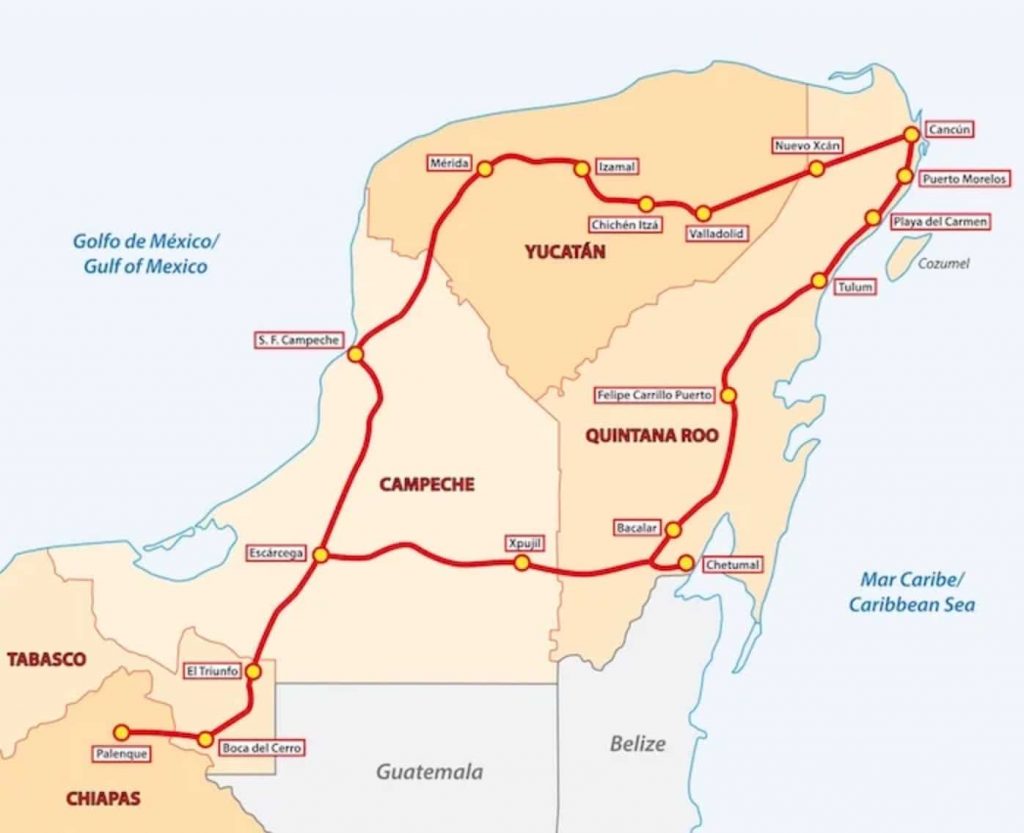 It will run 1,500 kilometers (932 miles) from Palenque, Chiapas to Cancun, Quintana Roo, connecting the Yucatan Peninsula and providing access to the archaeological sites and cultural centers of the region. The train will have 12 stations along the route, with stops in cities including Campeche, Merida, Valladolid, and Tulum. It is estimated that the Mayan Train will carry up to 5 million passengers annually and reduce travel times between destinations by 50%.